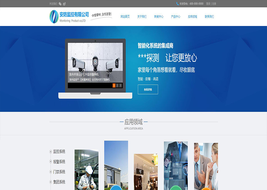 模板名稱:(帶手機版數據同步)自適應安防監控器材類藍色網站模板