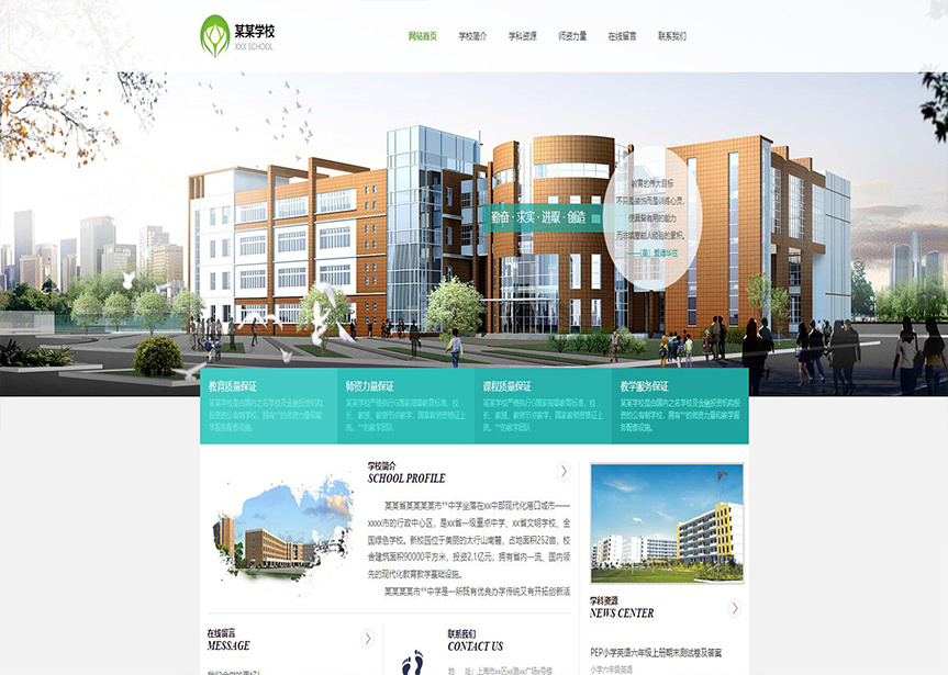 模板名稱:(帶手機版數據同步)自適應學校類綠色網站模板