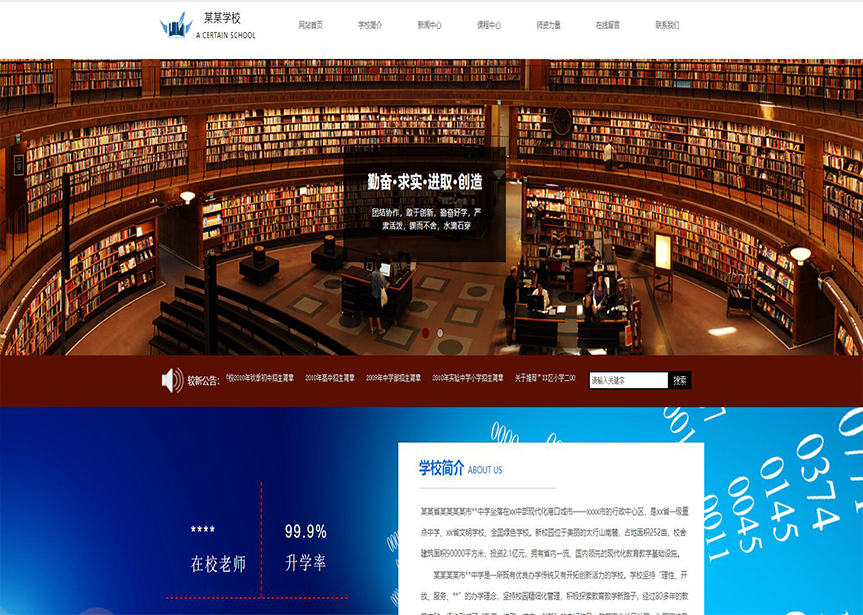 模板名稱:(帶手機版數(shù)據(jù)同步)自適應(yīng)學(xué)校類藍色網(wǎng)站模板