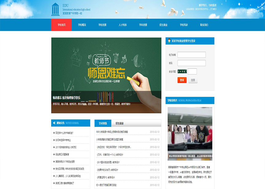 模板名稱:(帶手機版數據同步)自適應中學附一校網站模板