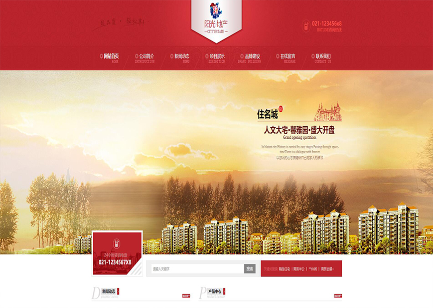 模板名稱:(帶手機版數據同步)自適應房地產紅色網站模板