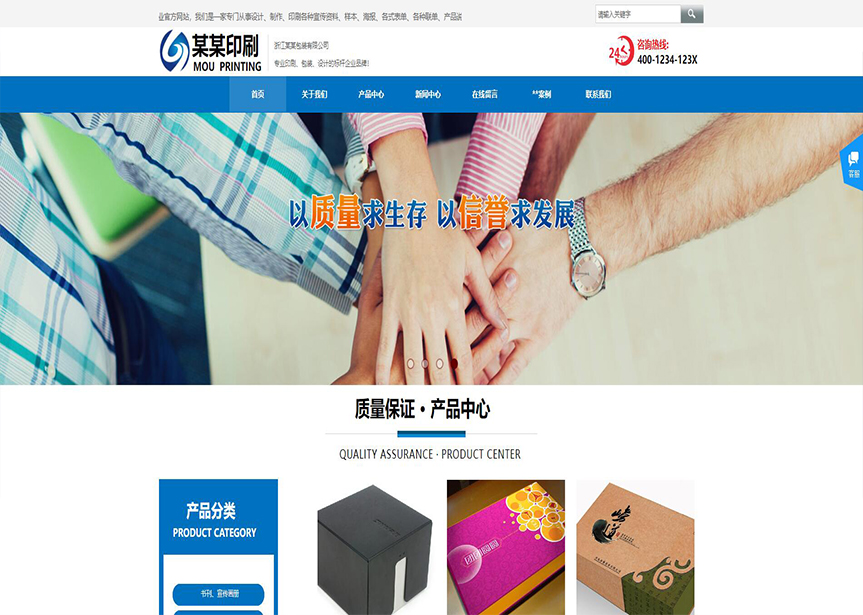 模板名稱:(帶手機版數據同步)自適應印刷包裝類藍色企業通用網站模板