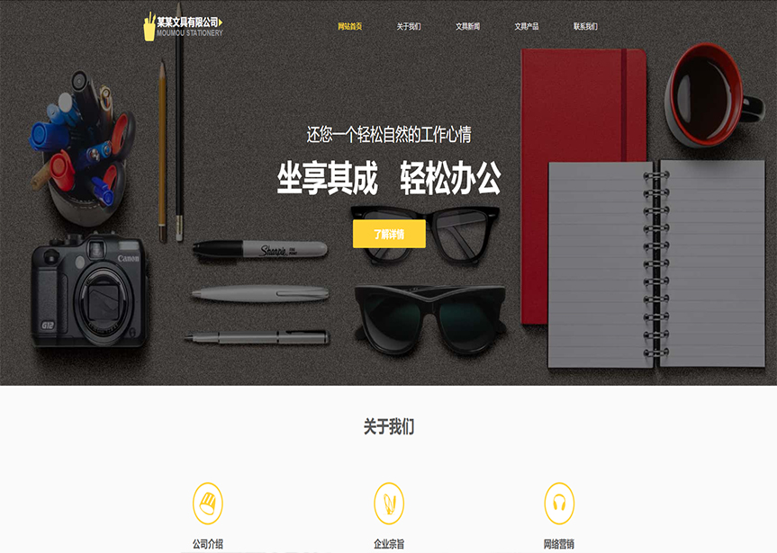 模板名稱:(帶手機版數據同步)自適應辦公用品類黃色公司網站模板