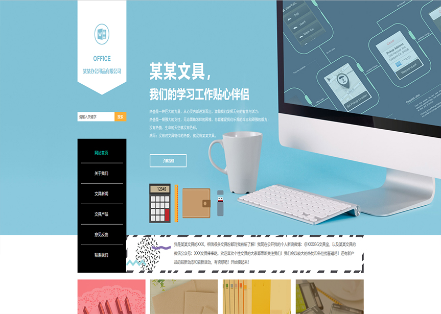 模板名稱:(帶手機版數據同步)自適應辦公用品類文具官網網站模板