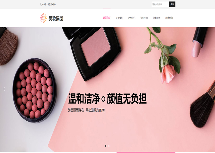 模板名稱:(帶手機版數據同步)自適應美容護膚類粉色通用網站模板