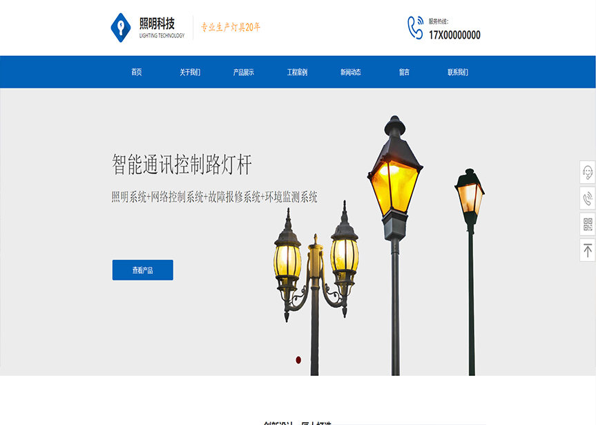 模板名稱:(帶手機版數據同步)自適應能源燈具類藍色通用網站模板