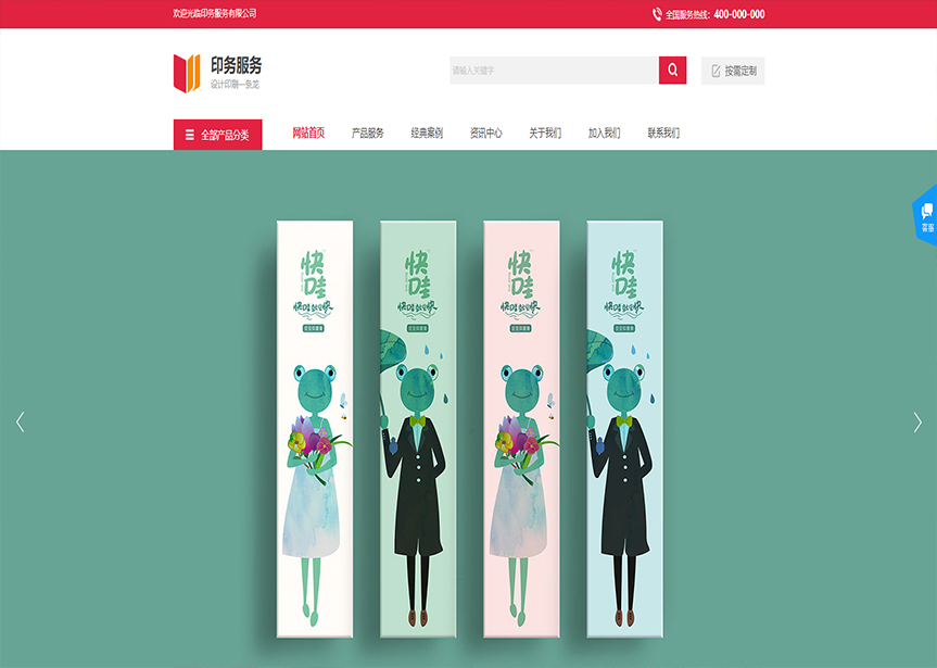 首頁 / 印刷、包裝 / (帶手機版數據同步)自適應印刷包裝類紅色通用網站模板