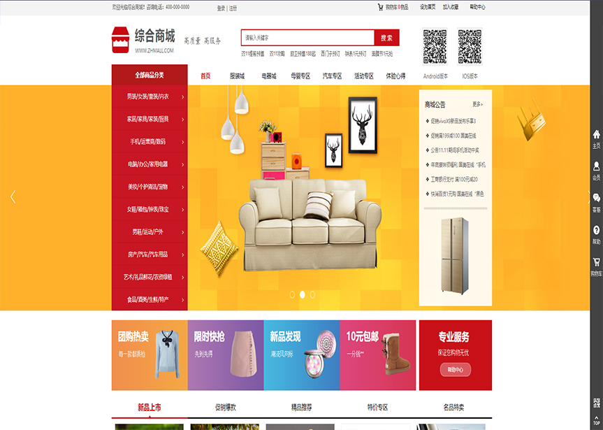 網站模板名稱:(帶手機版數據同步)自適應商城類綜合商城通用網站模板