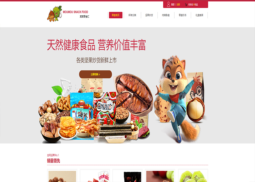網站模板名稱:(帶手機版數據同步)自適應商城類零食商城通用網站模板