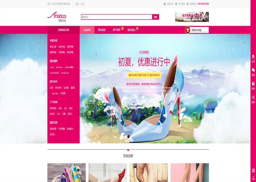 網站模板名稱:(帶手機版數據同步)自適應商城類女鞋商城通用網站模板