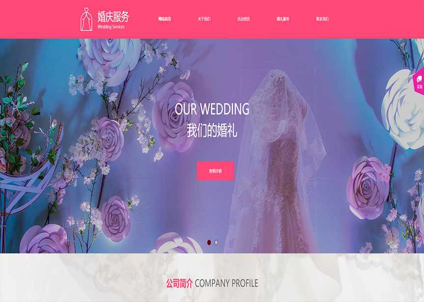 網站模板名稱:(帶手機版數據同步)自適應婚禮婚慶類粉色通用網站模板