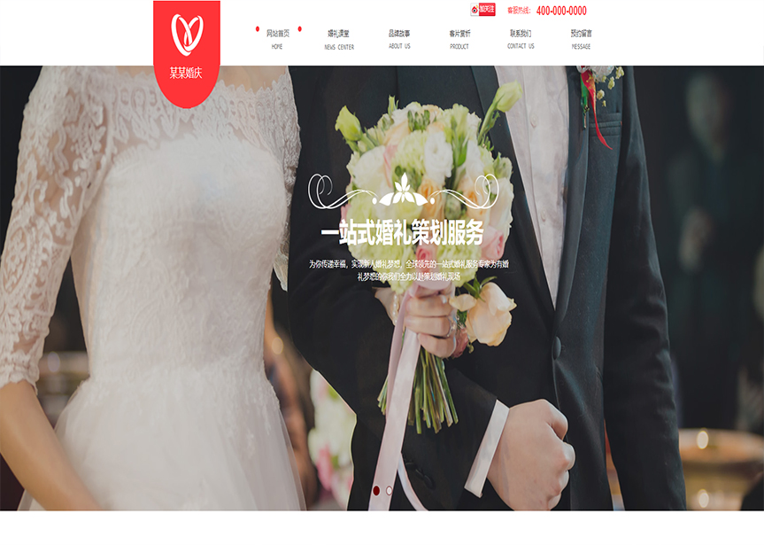 網站模板名稱:(帶手機版數(shù)據(jù)同步)自適應婚禮婚慶類紅色網站模板