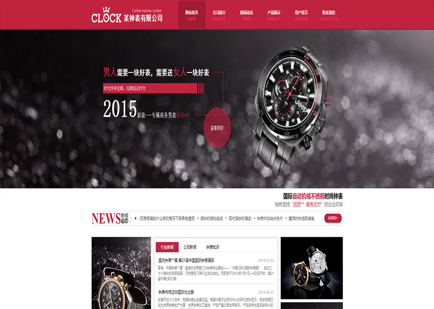 網站模板名稱:(帶手機版數據同步)自適應鐘表類紅色網站模板
