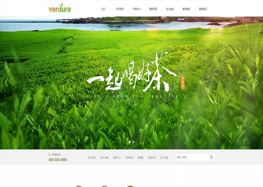 模板名稱:(帶手機版數據同步)自適應茶葉類綠色網站模板