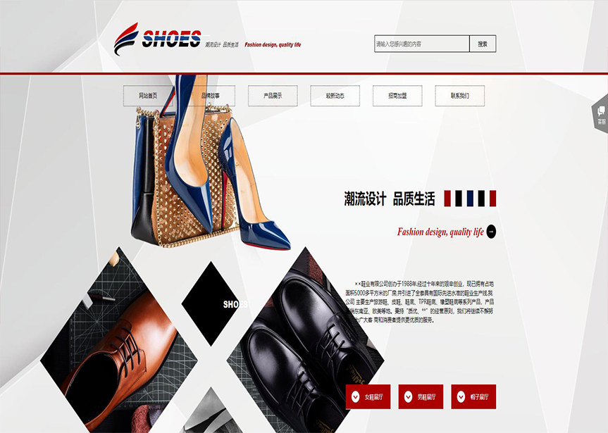 模板名稱:(帶手機版數據同步)自適應鞋帽類通用網站模板