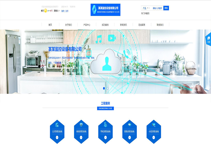 模板名稱:(帶手機版數據同步)自適應安防監控器材類藍色網站模板